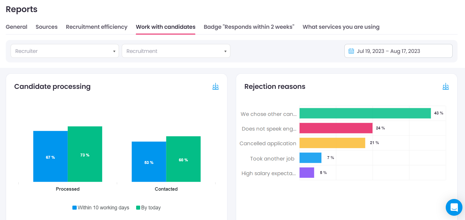 Teamio will show you both quality and quantity. That is, where most job seekers come to you from, but also the sources of the most adequate applicants. Or what are the most common reasons for rejection. That way, you know where best to spend your budget, and you have a strategic HR management argument to hand.